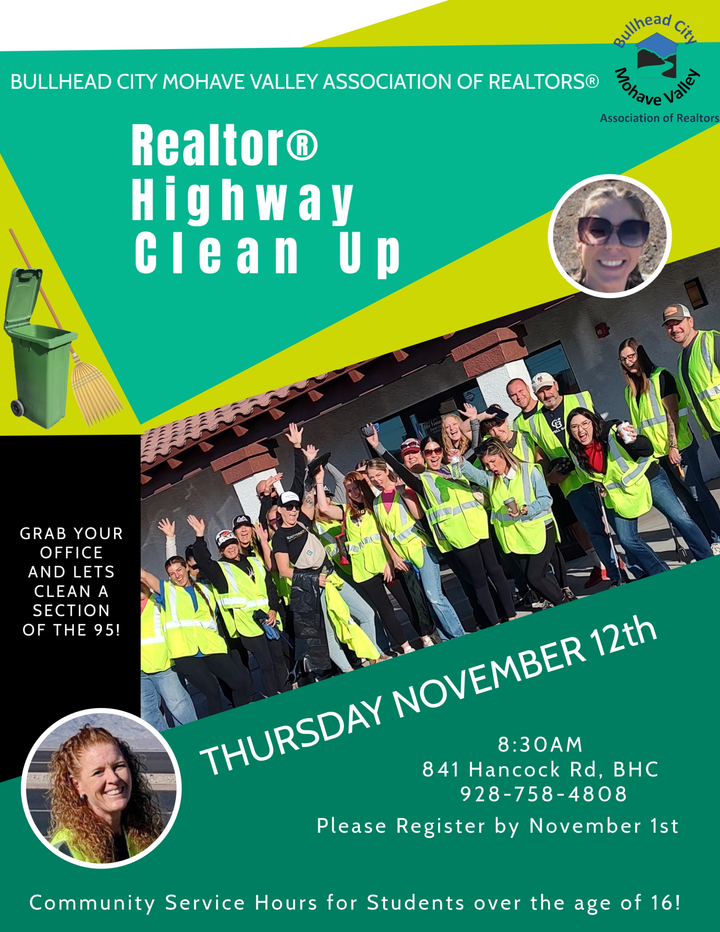 Realtors and volunteers will meet at the Association office at 8:30 a.m.We will be cleaning up a designated portion of Highway 95.