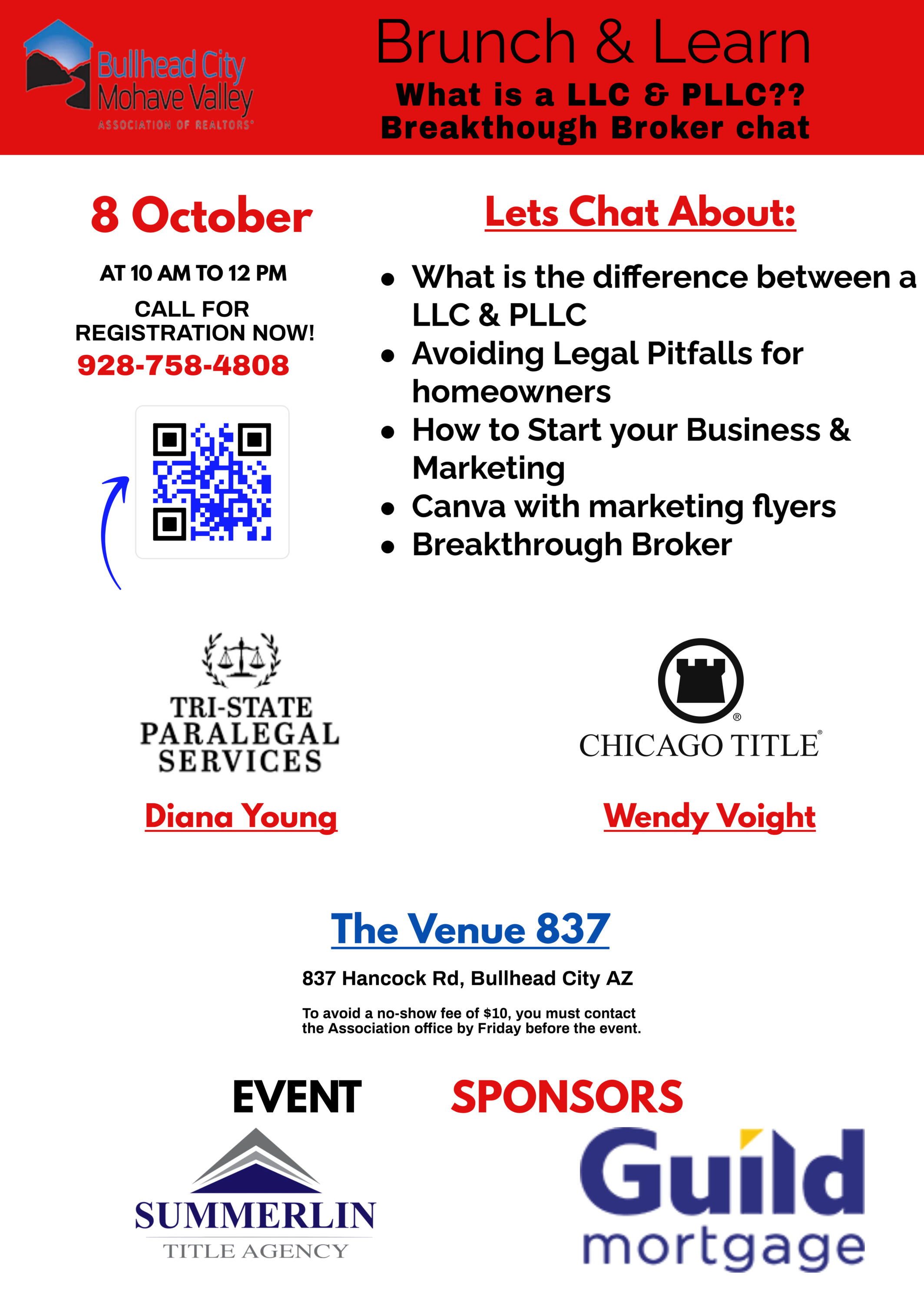 Join us for October’s Brunch & Learn on Wednesday, October 8th from 10:00 AM – Noon